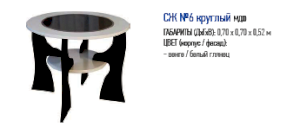 Небольшой журнальный столик №6 — это стильный и броский предмет обстановки. Необычным и запоминающимся его делают ножки необычной конфигурации и привлекающее внимание сочетание двух контрастных цветов: ослепительного белого глянца и темно-коричневого венге. Благодаря круглой форме он занимает минимум места и может использоваться даже в весьма тесных помещениях.