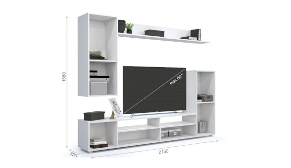 Стенка Лия выполнена в современном европейском стиле. Её дизайн совмещает в себе современные тренды: белый глянец, скругленные фасады МДФ, отсутствие лицевой фурнитуры. Белый цвет отлично сочетается со всей цветовой палитрой, что позволяет создавать яркий интерьер и компоновать с другой мебелью. Стенка включает в себя нишу под ТВ с открытыми и закрытыми полками для размещения приставок, медиа устройств, книг и элементов декора. Дополнительно гостиная комплектуется точечной подсветкой.