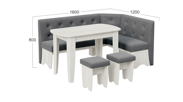 В любимом доме важно создать уют во всех помещениях, включая кухню. Для этой комнаты подойдет практичный дизайн, но желательно, чтобы он был стильным и оригинальным. Со всеми поставленными задачами успешно справится наш уголок «Барселона», в комплекте которого уже имеются стол и табуреты.