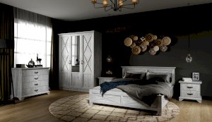 Вместительный комод Лорена в стиле неоклассика создает уютную атмосферу в интерьере гостиной или спальни. Белые фасады с фактурой и рисунком натурального дерева наполняют комнату светом, делают ее просторнее. Металлические ручки цвета состаренного серебра придают изысканность, а фигурные ножки и декоративный профиль крышки подчеркивают стилистику коллекции. В выдвижных ящиках на телескопических направляющих удобно хранить любые предметы одежды и личные вещи. Выполнен из экологичных материалов.
