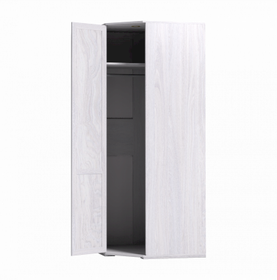 Используйте углы в комнате рационально! Угловой шкаф оснащен стационарной штангой длиной 81 см, полочками для белья и автоматической подсветкой, которая включается, если шкаф открыт. Фасад углового шкафа изготавливается только в исполнении «левый» (определяется по расположению петель). По своим габаритам угловой шкаф подходит для компоновок глубиной 590 мм.