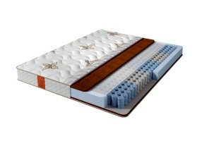 В основе матраса блок независимых пружин Pocket 5 Zone, имеющий 5 зон различной степени упругости, плотностью 512 пружин на спальное место. Благодаря использованию проволоки различного диаметра каждая из зон обеспечивает правильную поддержку позвоночника и правильное распределение нагрузки. В качестве наполнителя используется натуральная кокосовая койра. Матрас с кокосовой койрой самый жесткий в коллекции Eco.Чехол выполнен из приятного турецкого трикотажа с вискозой, простеганного на объемном гипоаллергенном синтепоне.