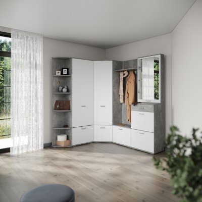 Шкаф позволяет рационально использовать пространство и будет хорошо смотреться даже в небольшой комнате, служит связующим звеном для составления угловой системы хранения. Внутри предусмотрены полки для белья и отделение с металлической овальной штангой. Идеально компонуется со всеми модулями системы Виола.
