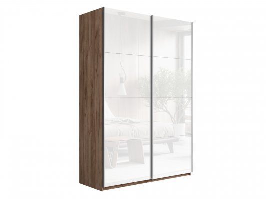 Шкаф-купе 2-х дверный Прайм Белое стекло/Белое стекло 1400х2300х570 мм Крафт табачный