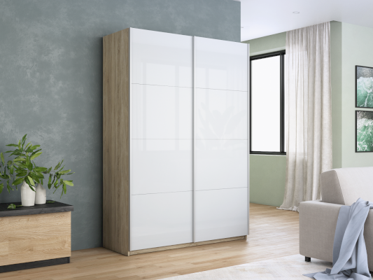 Шкаф-купе 2-х дверный Прайм Белое стекло/Белое стекло 1400х2300х570 мм Сонома