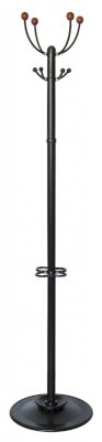Вешалка напольная на 4 крючков. Снабжена подставкой для зонтов. Утяжеленное двойное основание. Выполнена из оцинкованной стали с полимерным покрытием.