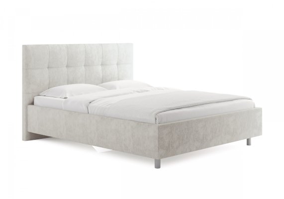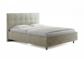 Лаконичная интерьерная кровать с изголовьем, украшенным декоративной строчкой. Модель изготовлена из ДСП. Обратная сторона изголовья обита темно-серым спандбондом, но, при желании, её можно выполнить из основного обивочного материала. В комплект кровати входит кроватное основание. Каркас основания выполнен из металла, ламели - из берёзы. При необходимости в комплект можно включить подъемный механизм с бельевым ящиком, который существенно увеличит объем хранения вещей,  а так же позволит легко производить уборку пыли под кроватью.