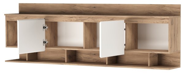Крепится к стене через навесные элементы. Для удобства открывания и удержания фасада в открытом положении устанавливаются газлифты. Применение интегрированной ручки на фасадах делает модель стильной и безопасной – дверцы открываются за профилированные выступы. Фасады обработаны кромкой 1 мм.