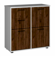 Тумба для прихожей имеет  2 отделения под обувь оснащенными обувными механизмами, два выдвижных ящика и нишу за закрытой дверкой для обуви или различных вещей.