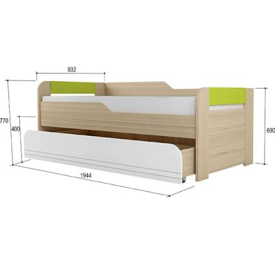ШхГхВ 2044 x 932 x 800 мм - спальное место: 900х2000 мм