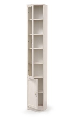Шкаф В-17- модуль с наименьшей шириной из представленных в данной коллекции. Он компактный, но вместительный. Нижний фасад глухой, он позволяет хранить те вещи, которые нужно спрятать от посторонних глаз. Верхний фасад со стеклянной вставкой. Он позволит сделать просматриваемыми предметы, которые радуют глаз, будь то посуда или книги. Прочные полки из ЛДСП выдерживают вес до 5 кг. Полки выполнены в цвет корпуса шкафа. Фасады крепятся на металлические петли без доводчиков.