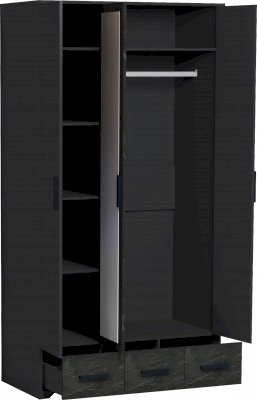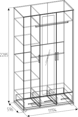 Трехстворчатый шкаф для одежды и белья Айрис 444 с зеркалом и выдвижными ящиками — находка для большой и маленькой спальни. Функциональное наполнение шкафа разделено, что очень удобно для зонирования гардероба всех членов семьи. Шкаф оснащен отделением для хранения белья с полками на скрытых полкодержателях и отделением для одежды со стационарной штангой 758 мм. 3 выдвижных ящика комплектуются шариковыми направляющими, что обеспечивает минимальный люфт ящиков и максимальное использование их площади. Петли с доводчиками для бесшумного закрывания дверок шкафа. Зеркало на фасаде шкафа.