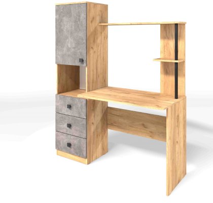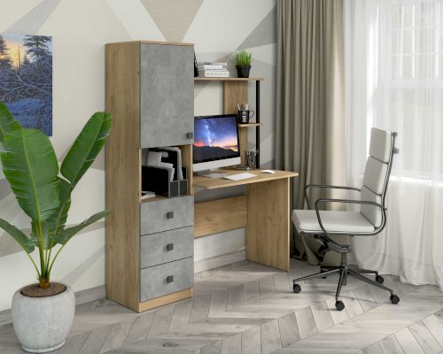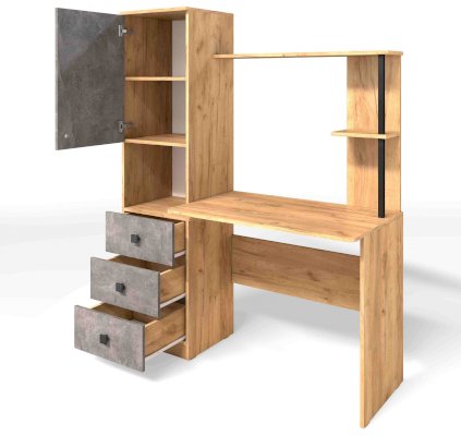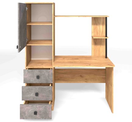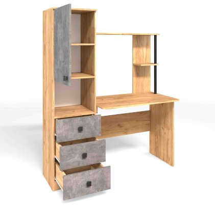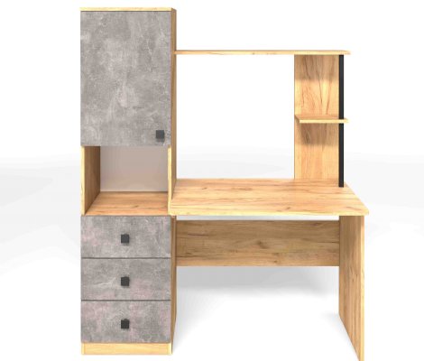Солидный и вместительный письменный компьютерный стол с закрытыми полками и тремя ящиками отлично подойдет для работы или учебы. В нишу удобно установить дополнительное оборудование - сканер или принтер. Открытые полки удобны для размещения мелочей.