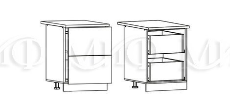 ШН2Я800 Шкаф нижний с 2 ящиками Черный глянец