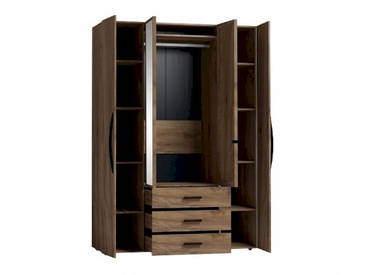 Вместительный распашной шкаф красивого древесного оттенка с 2-мя зеркальными фасадами прекрасно подойдет в небольшую спальню. Функциональное наполнение шкафа разделено на две симметричные половины, что очень удобно для пользования и зонирования гардероба всех членов семьи. За глухими фасадами скрываются отделения с 4 полочками, регулируемых по высоте, что делает хранение одежды и аксессуаров крайне удобным. Зеркальные фасады шкафа обрамлены вставками из ЛДСП. Изнутри зеркало покрыто специальной защитной пленкой, которая предотвратит падение осколков, если оно разобьется. Элегантная ручка-петля позволит открывать дверцу, не прикасаясь к зеркальному полотну, а, значит, его не придется часто протирать. Вторая зеркальная дверца открывается за свес. Внутри шкафа закреплена стационарная штанга (777 мм), которая выдержит нагрузку в 40 кг. Особенно деликатные вещи, постельные принадлежности и другие предметы быта помогут хранить три выкатных ящика с глубиной 40 см. Ящики оснащены шариковыми направляющими полного выдвижения, что обеспечит их высокую прочность и абсолютную бесшумность при эксплуатации.