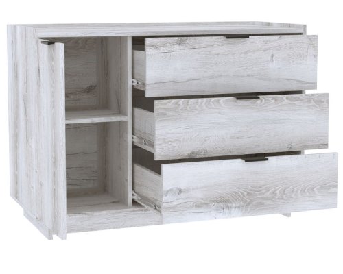 Современная Тумба МЦН ФЛЕКС 5 в светлом цвете Дуб Шавиниган выполнена из ЛДСП класса эмиссии Е1 толщиной 16 мм. Тумба-комод — это оптимальное решение для хранения предметов разных габаритов и назначения. В выдвижных ящиках разместите мелкие вещи, а в отделении с дверкой — более габаритные. Ящики оснащены шариковыми направляющими полного выдвижения, а дверка с самоклеющимися демпферами тихо закрывается. Тумба МЦН ФЛЕКС 5 разработана с возможностью универсальной сборки, что позволяет расположить дверку как справа, так и слева. Столешница с бортиками идеально подходит, чтобы поставить принтер или телевизор. Бортики по краям защищают предметы от падения со столешницы.