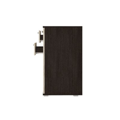 Модель Стандарт №3 выполнена из высококачественной ЛДСП в популярных оттенках венге и лоредо, Оснащена удлиненными хромированными ручками геометрической формы.