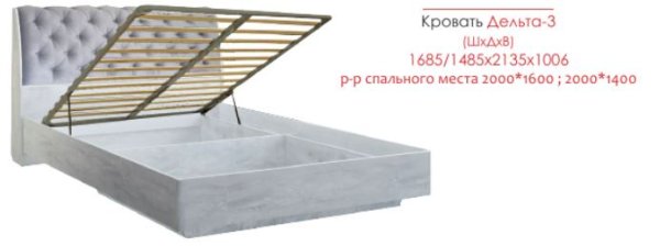 Кровать снабжена ортопедическим основанием с подъемным механизмом. Матрас в комплект не входит и приобретается отдельно.