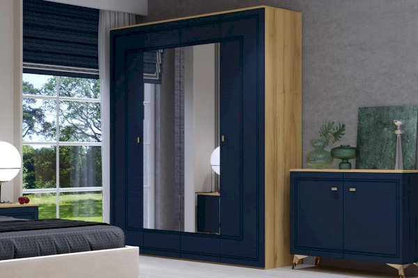 Дуб золотистый/Темно-синий софт