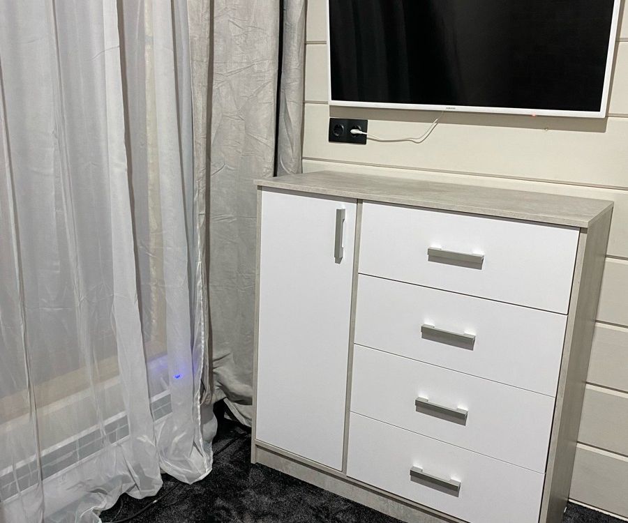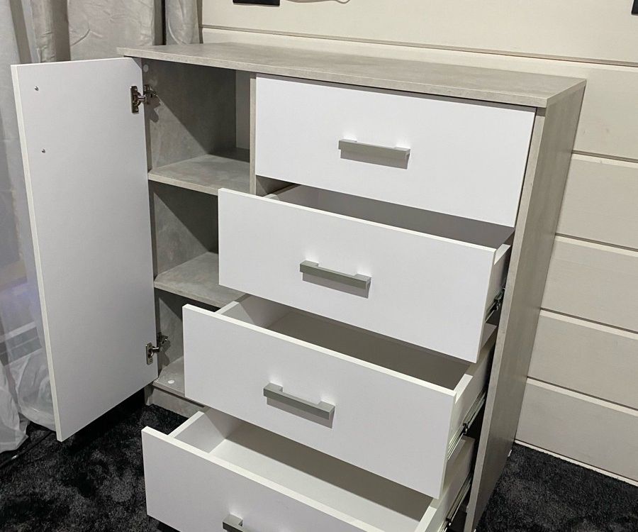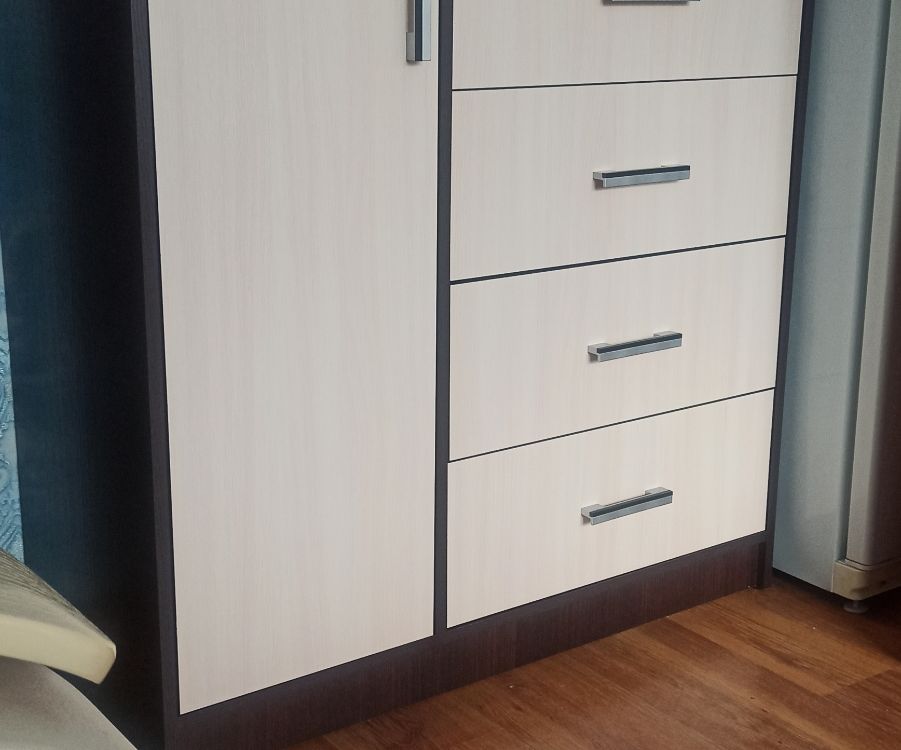 Классный комод, удачно успела купить. По рисунку есть небольшой рельеф, выглядит приятно. Вместительные ящики, открывают на 90-100%