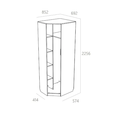 Шкаф «Фанк» предназначен для тех, кто любит выдержанный стиль. Идеально для организации подростковой комнаты. А универсальный дизайн и цветовое решение подойдет как для мальчика, так и для девочки. С угловым шкафом «Фанк» получится максимально использовать пространство в комнате, задействовав место в углу. Внутри модуль разделен на две функциональные зоны. Секция с пятью полками подходит для хранения одежды в сложенном виде, а на штанге в другой половине шкафа можно разместить одежду на вешалках-плечиках. Широкая полка, расположенная над штангой, удобна для хранения коробок.