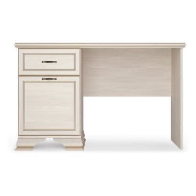 Дизайн стола в классическом стиле позволит ему гармонично вписаться практически в любой традиционный интерьера. Материалы производства ЛДСП и МДФ в виде накладок, декоративных опор и фигурного профиля на столешнице. Золотая патина подчеркивает рельефные детали, а металлические ручки цвета «старая бронза» завершают образ изысканной классической модели.