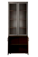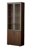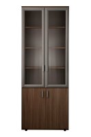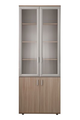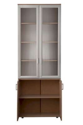 Закрытый шкаф для документов. За дверцами расположены вместительные полки. Стеклянные дверцы, придают конструкции визуальную легкость.