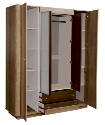 Этот шкаф создан, чтобы удовлетворить любое желание своего владельца. В нем есть все – отсеки для хранения вещей на полках, выдвижные ящики и пространство для хранения одежды на вешалках.