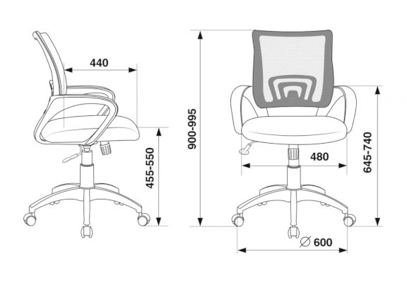 Материал обивки: сетка (спинка) + ткань (сиденье)