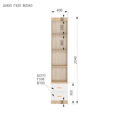 Наполнение: 2 выдвижных ящика на шариковых направляющих глубиной, полки