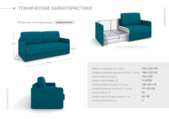 • уникальный механизм трансформации - еврокнижка - прост и надежен. Легкое раскладывание за счет отсутствия трения между металлом и пластиковыми накладками