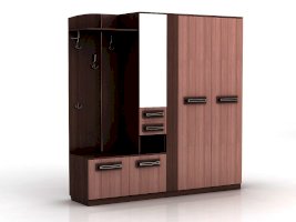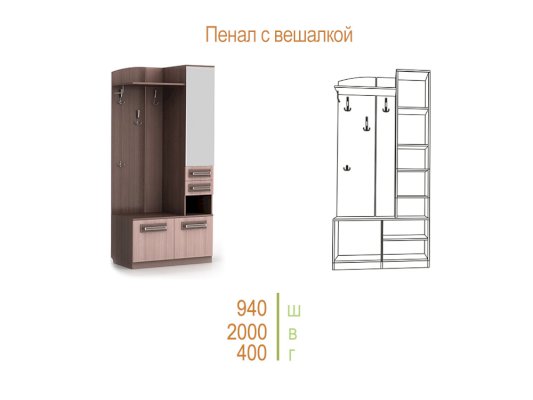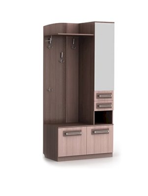 Венге/ Липа Светлана Отличительные особенности прихожей — функциональный дизайн и современные оттенки текстур. Конструкция данной модели включает в себя все необходимое: зеркало, шкаф, пенал, вешалки, ящики и множество полок для различных мелочей.