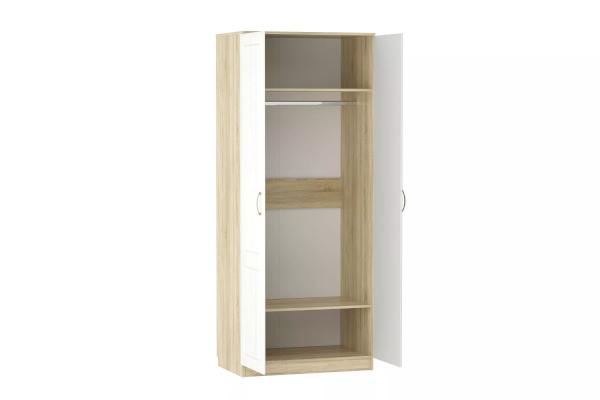 Двухстворчатый шкаф Оливия НМ 040.60 Х поможет организовать хранение вещей в детской, гостиной, спальне или прихожей. Внутри модуля предусмотрены овальная штанга для одежды на вешалках. Широкие антресольная и нижняя полки подойдут для размещения коробок и аксессуаров. Классические глухие фасады надежно защитят содержимое шкафа от влаги и пыли.