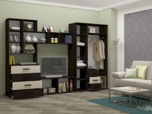 Эта модульная система отличается своей компактностью, легкостью, функциональностью. Стенка подойдет как в малогабаритную квартиру, так и в просторную гостиную.