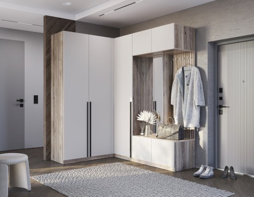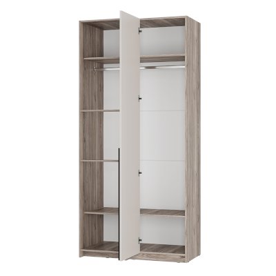 Угловой шкаф «Урбан» состоит из отделения с хромированной штангой для плечиков, а также верхние и нижние ниши.