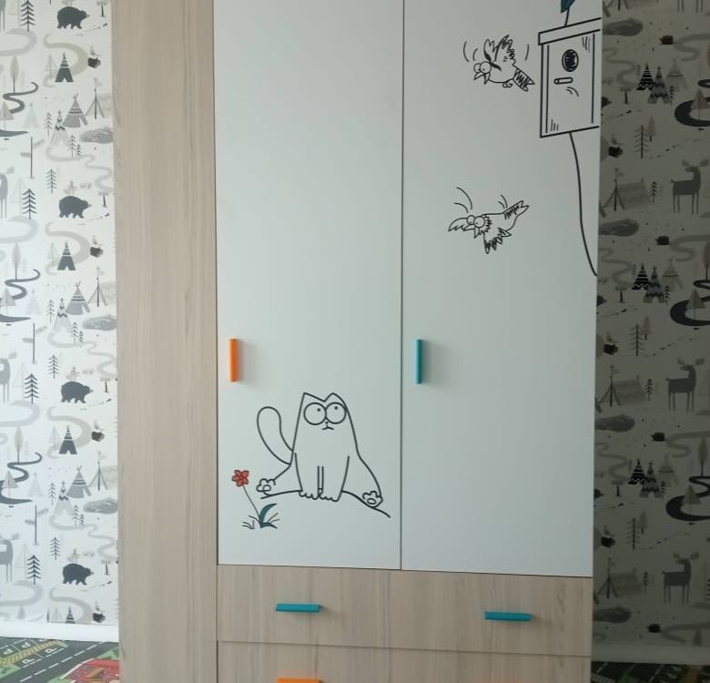 Шкаф вместительный, симпатичный, разные отсеки, ручки прорезинены, есть доводчики. Пришёл без сколов, комплектность