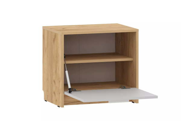 Тумба для обуви из коллекции НОРТОН выполнена в светлых оттенках, что визуально расширяет комнату, а контрастные тоны фасада придают помещению выразительность. Тумба представлена в двух цветах на выбор – Дуб Крафт Табачный и Дуб Крафт Золотой.