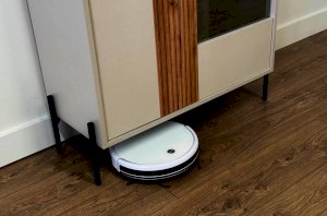 Другая сторона комода оснащена выкатным ящиком и фасадом со стеклом, обладающим зеркальным эффектом. Это не только добавляет современности и шарма, но и обеспечивает дополнительное пространство для хранения декоративных предметов и книг.