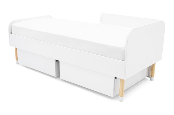 Комплект кровати состоит из каркаса кровати и ортопедического основания. Бортик, ящики, матрас и постельные принадлежности приобретаются отдельно.
