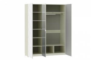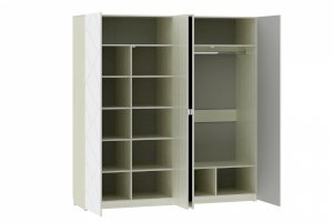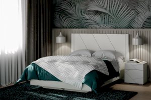 Все ручки в мебели — скрытые. Элементы изголовья кровати обтянуты мягким кожзамом, а оригинальное основание с эффектом «парения» преображает интерьер. В выдвижных ящиках используется система скрытых направляющих Quadro stop control, что позволяет легко и почти бесшумно использовать ящики. Большие зеркала шкафа визуально расширяют пространство комнаты и сделают утренние и вечерние ритуалы еще приятнее.
