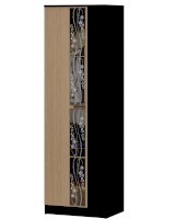 Декоры отличаются выраженной древесной текстурой, а фасадная часть украшена тонированным стеклом и зеркалами с пескоструйным рисунком.
