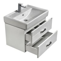 Современная лаконичная подвесная модель тумбы с двумя ящиками AQUATON Америна 70 имеет ширину 70 см и выполнена в белоснежном глянцевом цвете. Корпус изготовлен из влагостойкой ЛДСП, а фасад - из высококачественной МДФ. Широкий и вместительный нижний ящик предназначен для крупных предметов, а в верхнем имеется специальная организация пространства, позволяющая хранить мелкие вещи. Ящики снабжены доводчиками и системой бесшумного и плавного закрывания. Корпус и фасады покрыты полиэфирной краской ультрафиолетового отверждения, обеспечивающей дополнительную защиту от влаги.