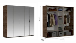 Современный распашной шкаф Джулия яркий представитель европейского минимализма. Это шкаф-конструктор, который позволяет выбрать подходящий вам размер, его наполнение и дизайн. На базе корпуса можно создать множество комбинаций: с зеркалами, с глухими глянцевыми фасадами, с порталом из ЛДСП 22мм или без него. Дополнительная опция – светодиодная подсветка монтируется в верхней части портала над каждой дверью. Шкаф выполнен из экологически безопасных надежных материалов. Декором белым глянцевым фасадам High Gloss служит фрезерованный рисунок «Волна» - подчеркивает зеркальный блеск, делает интерьер спальни особенным и неповторимым. Торцевые ручки из хромированного металла - яркий акцент фасадов. Наполнение шкафа включает в себя вместительные полки и отделения со штангой, что позволяет создать систему для хранения вещей различного назначения. Идеально компонуются со всеми модулями системы Джулия.