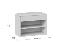 Тумба для обуви имеет открытую нишу для бережного хранения обуви и место под откидной крышкой. Данное пространство можно использовать для хранения обувных аксессуаров и различных мелочей, что без сомнений является преимуществом новинки.