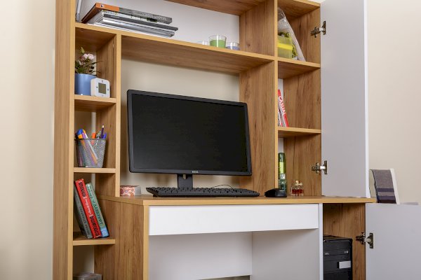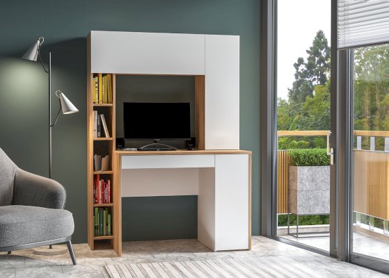 Функциональный и стильный вариант организации рабочего места с помощью компьютерного стола.