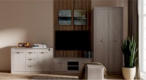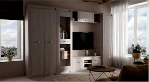 Гостиная «Монако» - это стильный современный дизайн, надёжная фурнитура, просторные шкафы для одежды и белья. За стеклеными створками можно разместить как дорогой фамильный сервиз, так и любой другой аксессуар, которым по праву гордится Ваша семья. До мелочей продуманная возможность установки телевизора делают гостиную ещё более удобной в эксплуатации В правильно составленной композиции, все элементы гарнитура дополняют друг друга, и раскрывают свою незаменимость.
