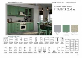 Кухонный гарнитур «Италия» воплотил в себе роскошь и эстетизм этой прекрасной средиземноморской страны. На суд покупателей представлены комплекты с отделкой под графит, платину, беленый дуб, а также великолепные модели фисташкового цвета. Шикарный вид придают дизайнерская фурнитура, дверцы шкафчиков из рифленого стекла, золоченные прямоугольники на фасадах.