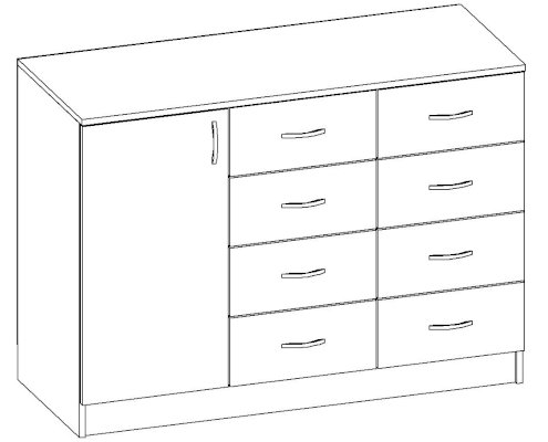 Данное изображение представлено в следующих цветах ЛДСП: корпус - Ясень Шимо тёмный, фасады - Ясень Шимо светлый.