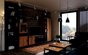 - Левая секция состоит из 7 открытых полок. Расстояние между полками 338 мм.
