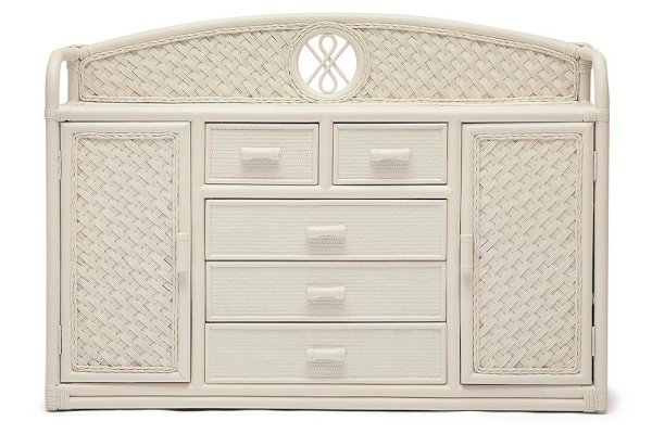 Великолепный высокий комод Secret De Maison из французской коллекции ANDREA, выполненный в колониальном стиле, прекрасно впишется в интерьер квартиры или загородного дома. При всей простоте исполнения, комод является довольно вместительным и функциональным предметом обстановки. Пять удобных выдвижных ящиков разного размера и два закрытых отделения с полками позволят хранить огромное количество предметов. Декоративная панель и боковые бортики сверху надежно защитят предметы от падения. Комод выполнен вручную из натурального ротанга с использованием нескольких видов традиционного индонезийского плетения. Натуральный ротанг, покрытый прозрачным матовым лаком, устойчивым к УФ-излучению, прочен, долговечен, способен выдерживать большую нагрузку, и будет радовать вас своим первоначальным видом долгие годы. Модель идеально сочетается с мебелью из коллекции ANDREA, поставляется в собранном виде.